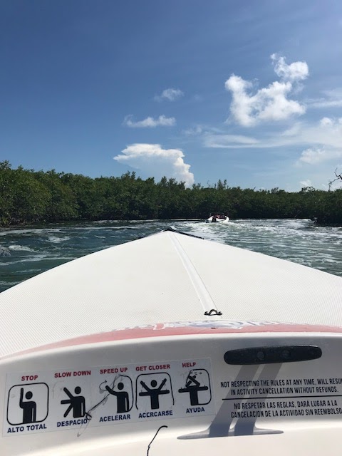 Four words; Miguel hooked us up! After breakfast on day two, we decided to check in with the local tour company to see what else Cancun had to offer. After much discussion and trying to decide on an excursion, because there are about a hundred to choose from, we opted for snorkeling. Don't get me wrong, there were a lot of very interesting and exciting excursions to choose from, but we opted for something more cost effective and did I mention, the chance to drive your own boat to and from the destination? That was a no-brainer for us! Besides, we think snorkeling is pretty exciting and it gave us a chance to connect with the ocean and all of it's creatures.